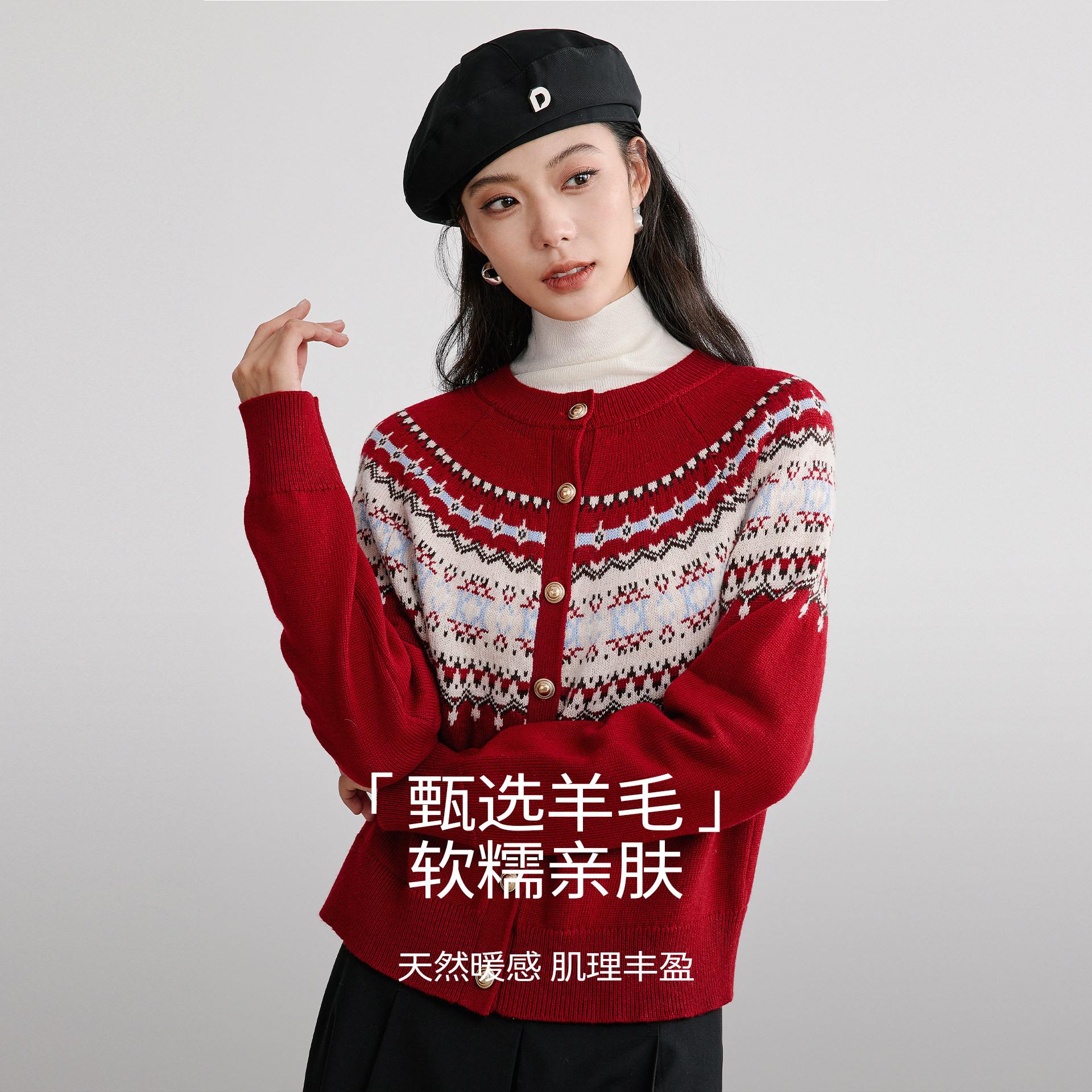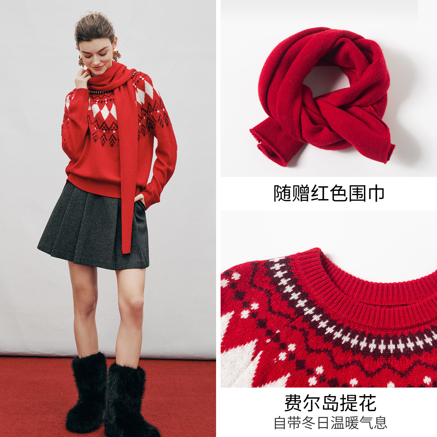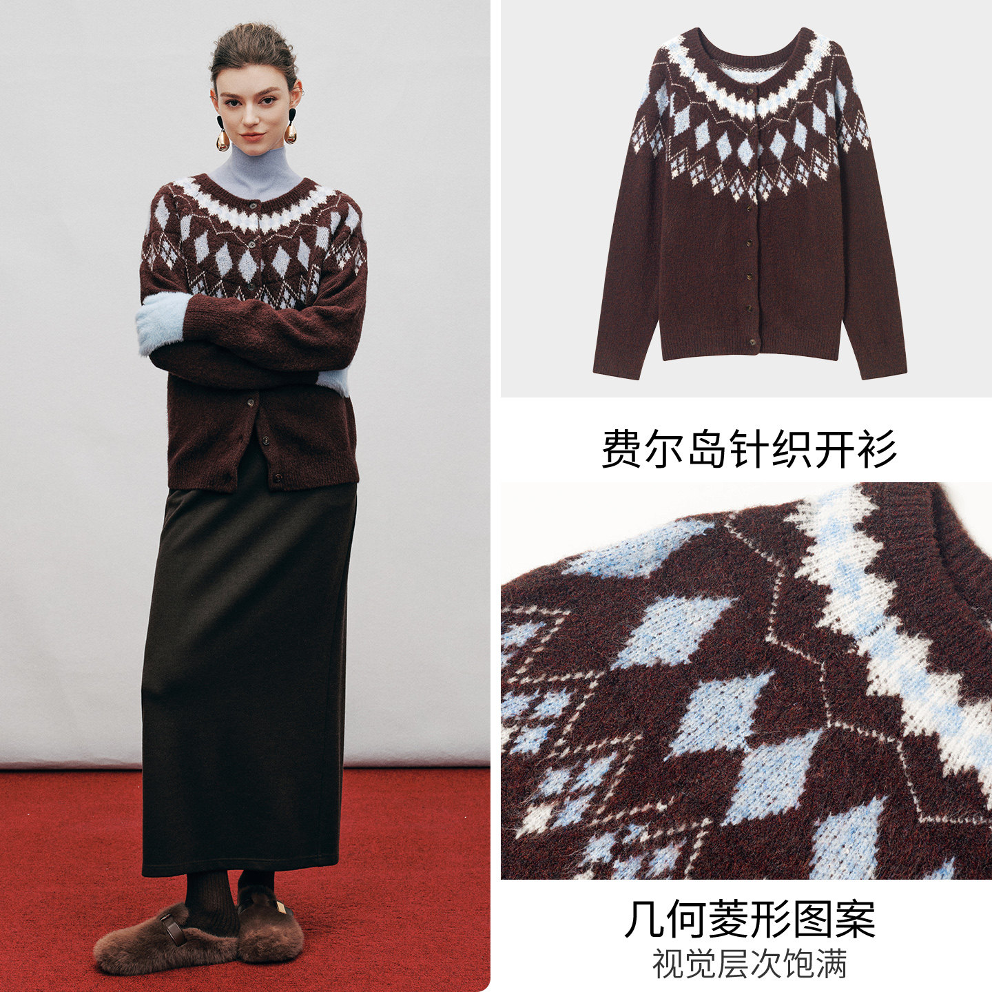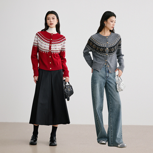 衣香丽影灰色费尔岛针织毛衣女2025秋冬装 宽松慵懒高级感上衣 新款