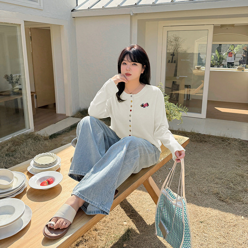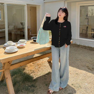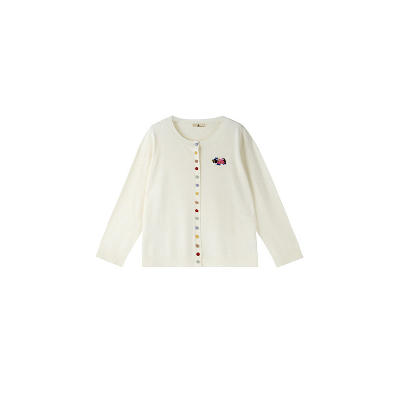 小波家2026春季 胖mm设计感上衣卡通贴布彩扣针织开衫