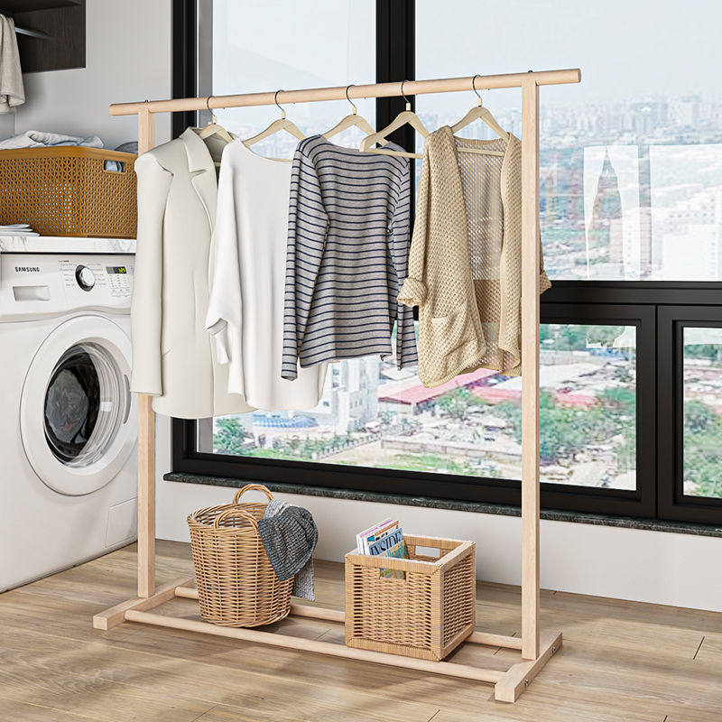 实木晾衣架落地卧室挂衣架室内家用学生宿舍简易小型凉衣服晒架子