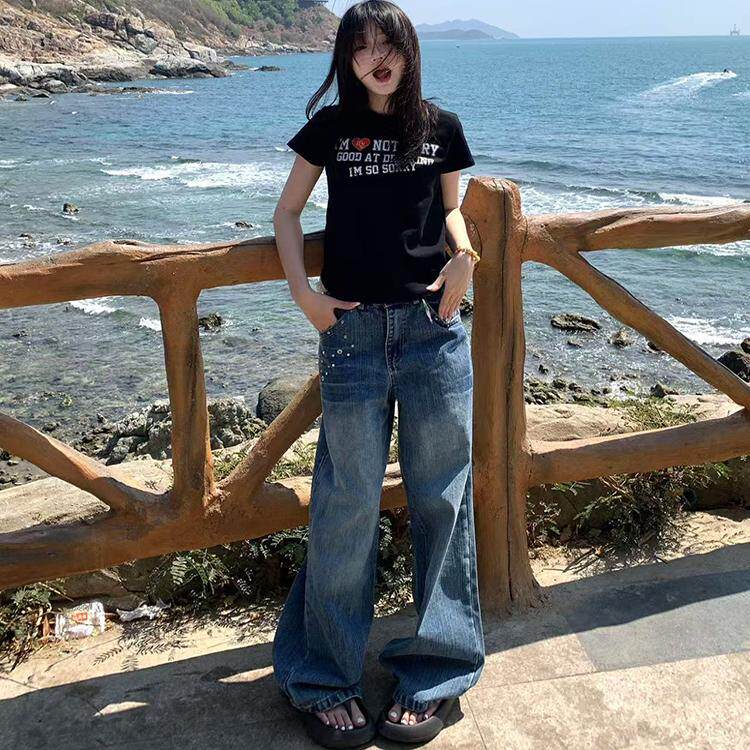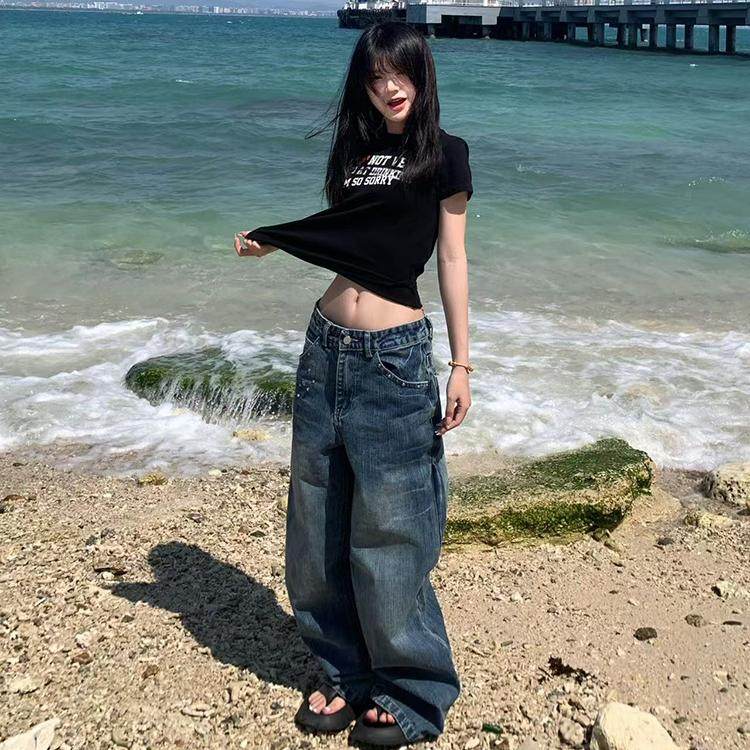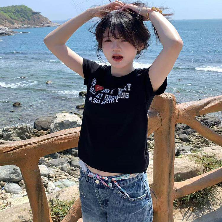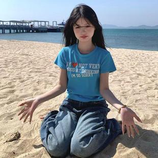 休闲印花辣妹短款 T恤男女夏季 上衣 复古字母正肩圆领短袖 GTGA美式