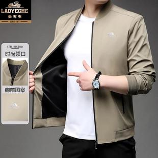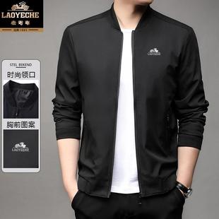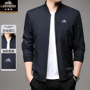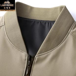 高档休闲免烫中年外套印花爸爸装 棒球领夹克男士 新款 老爷车春秋季
