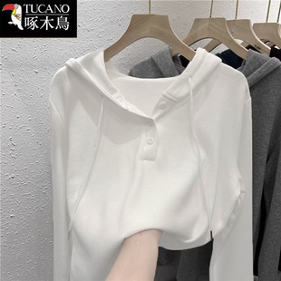 小众运动百搭上衣潮 长袖 啄木鸟正品 连帽套头卫衣女2025年春秋新款