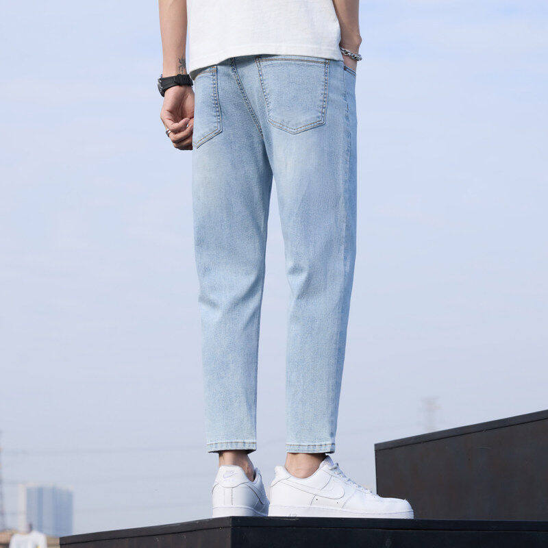 九分牛仔裤 浅蓝色薄款 男生矮个子瘦子XS码 160 小码 27小脚裤 男装