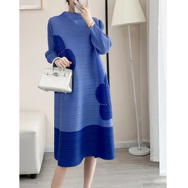 a字裙 显瘦设计感小众气质长袖 001褶皱连衣裙女春秋新款 宽松大码
