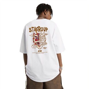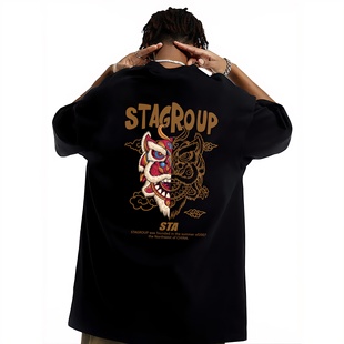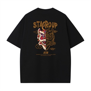 美式 新款 潮牌复古高街重磅纯棉T恤 男女夏季 STA旗舰店醒狮印花短袖