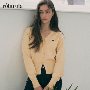 ROLAROLA秋款 英同款 针织V领开衫 韩式 毛衣 纽扣收腰外套长袖 张元