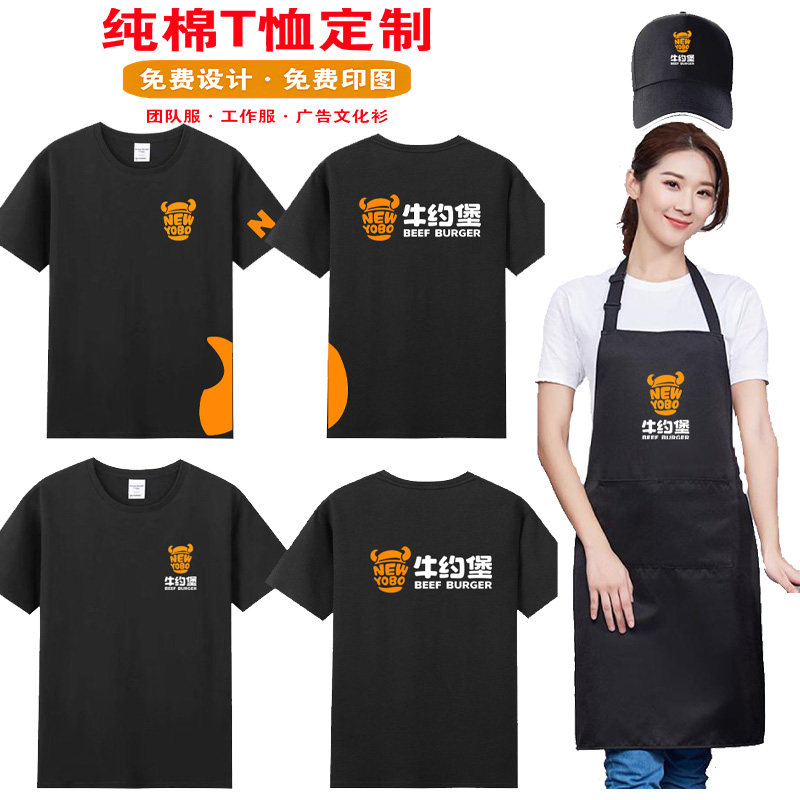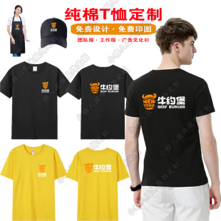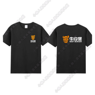夏季 印字 纯棉牛约堡定制工作服炸鸡汉堡披萨奶茶火锅烧烤广告衫