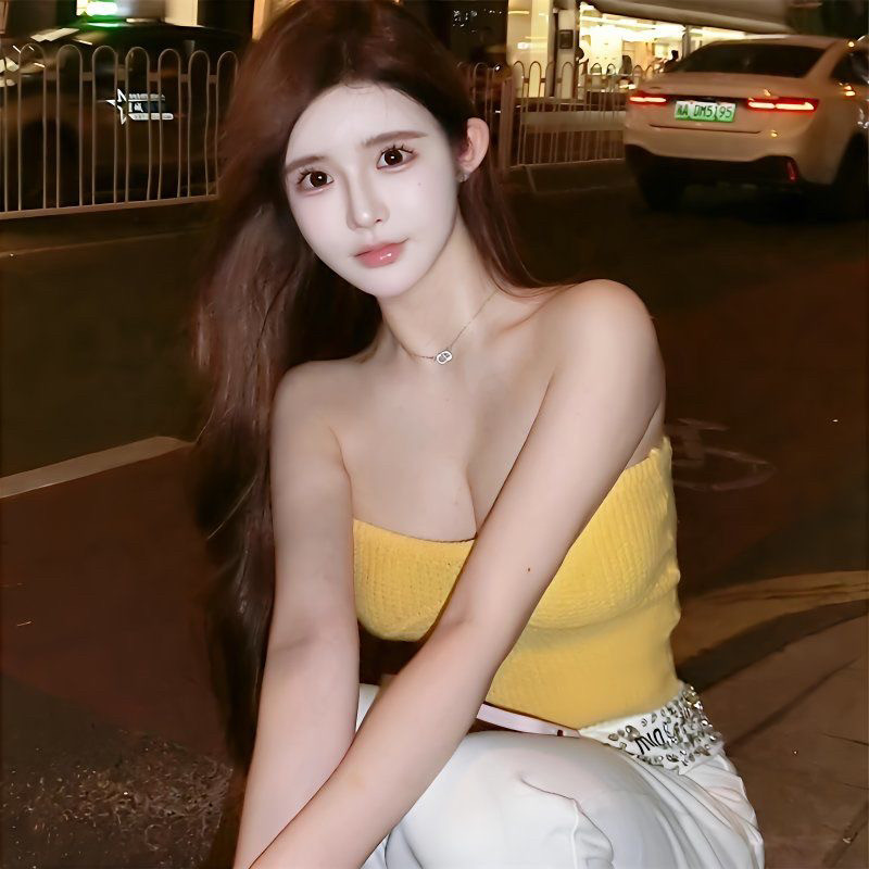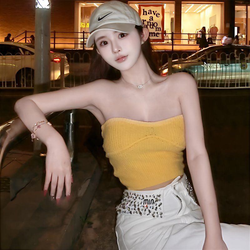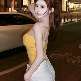 上衣潮 无袖 纯欲风辣妹无肩带抹胸背心女春秋新款 性感高腰露背短款