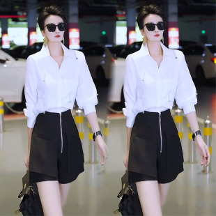 短裤 欧货气质时尚 洋气设计感小众显瘦衬衫 女2025春季 两件套潮 套装