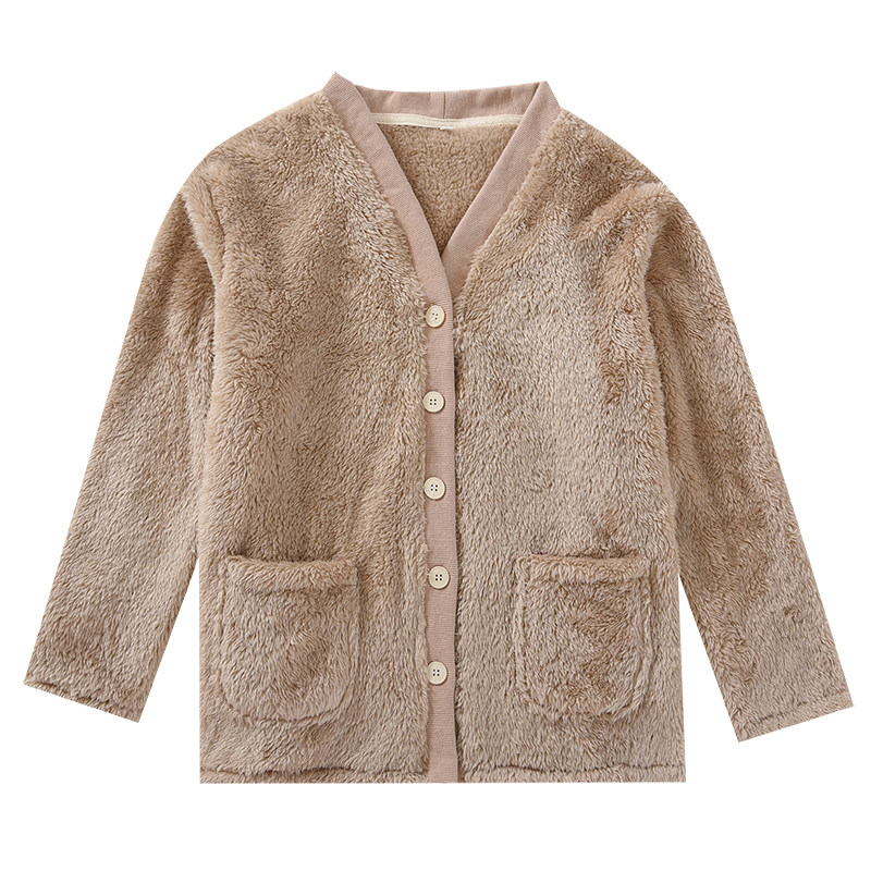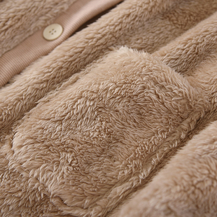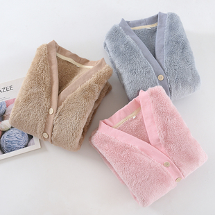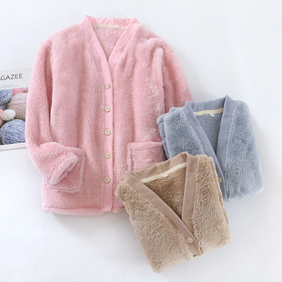珊瑚绒睡衣上装 女冬天加厚保暖休闲V领纯色法兰绒家居服上衣单件