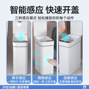 汉世刘家智能垃圾桶感应式 家用厕所卫生间客厅全自动电动带盖轻奢