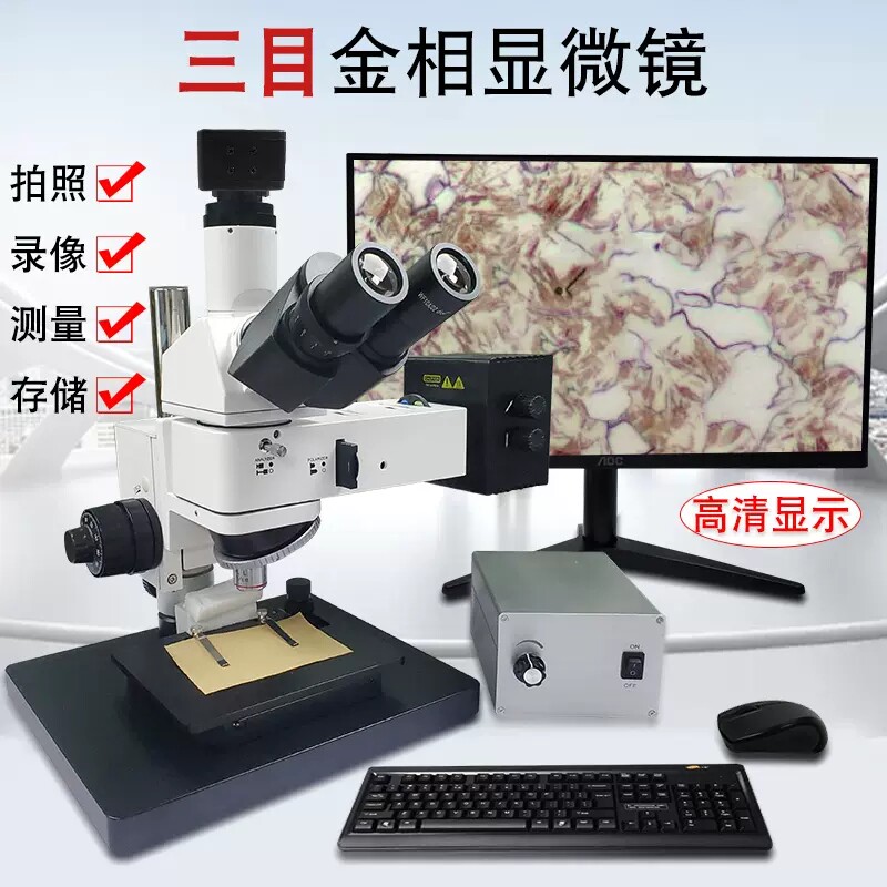 三目正置透射金相显微镜4K科研级5000X高倍大景深放大镜金属分析
