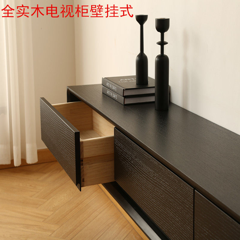 黑色电视柜茶几组合客厅家用26高35宽新款 简约实木落地柜电视机柜