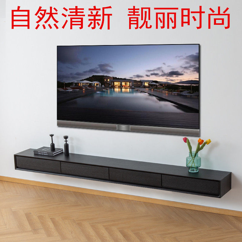 电视柜茶几组合客厅加宽40收纳储物柜一体2025新款 黑色落地电视柜
