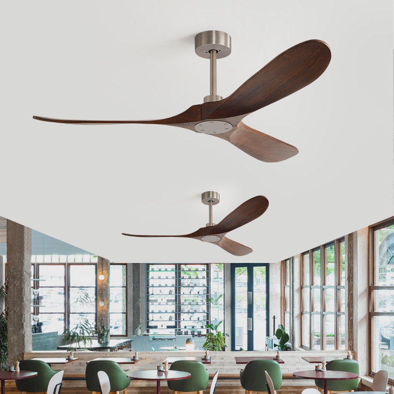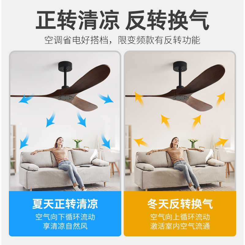 90寸大风力北欧实木吊扇客厅餐厅工业复古商用变频家用无灯电风扇