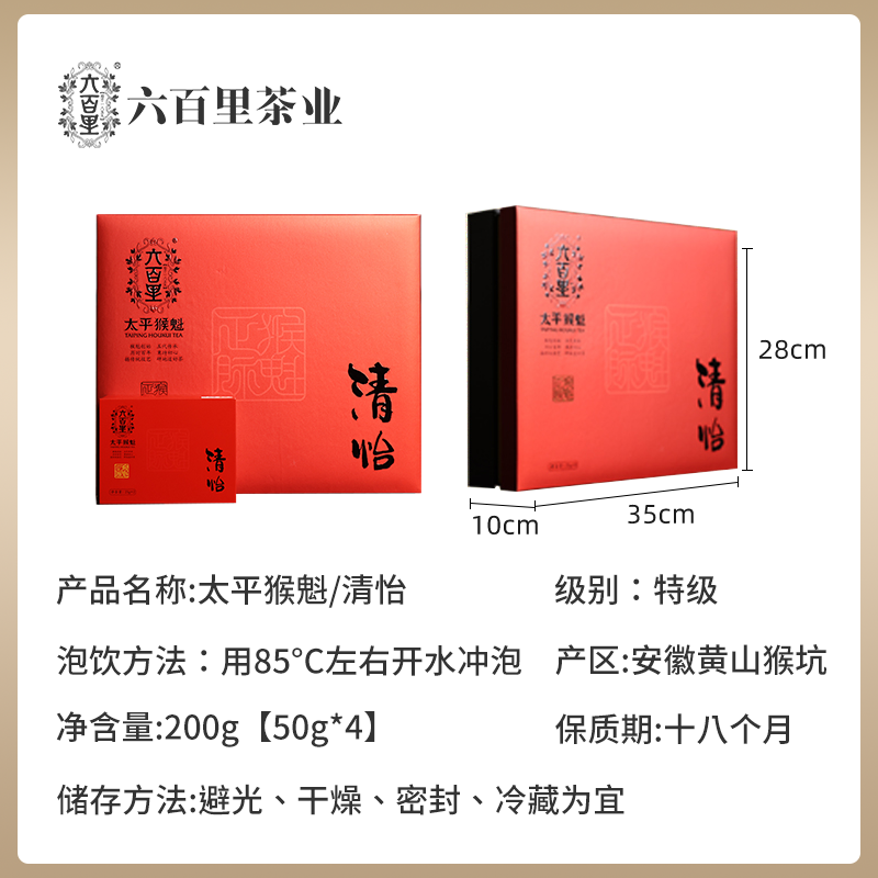 2025新茶六百里太平猴魁绿茶特级黄山茶叶50g 赠礼盒 4罐组合装