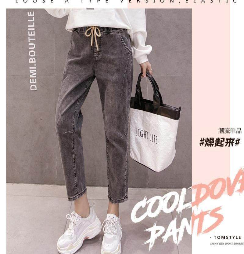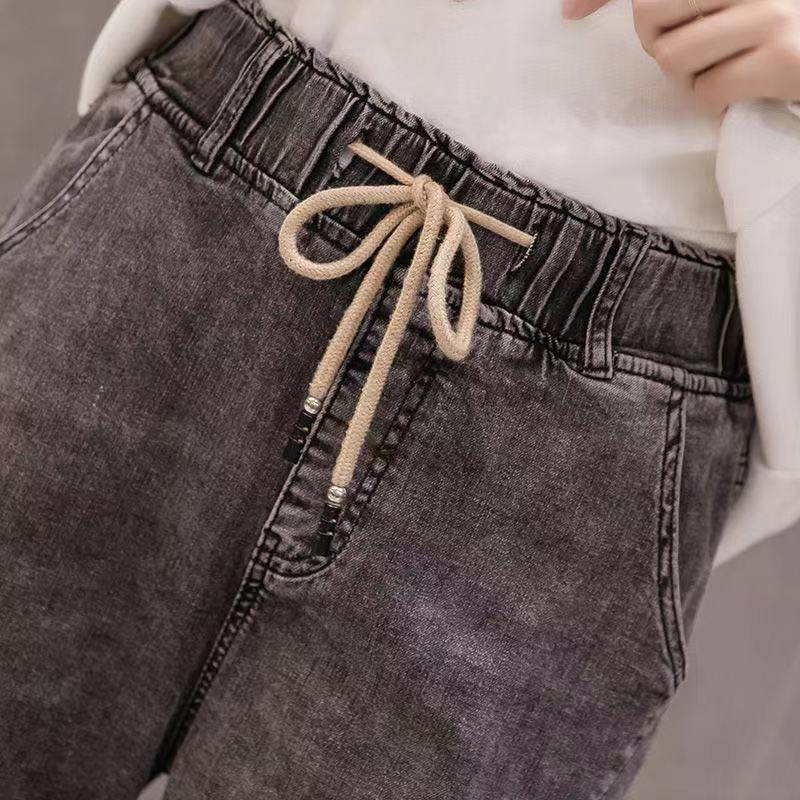女秋冬新加绒复古显瘦宽松长裤 升级 阔腿牛仔裤 窄版 子 两个长度
