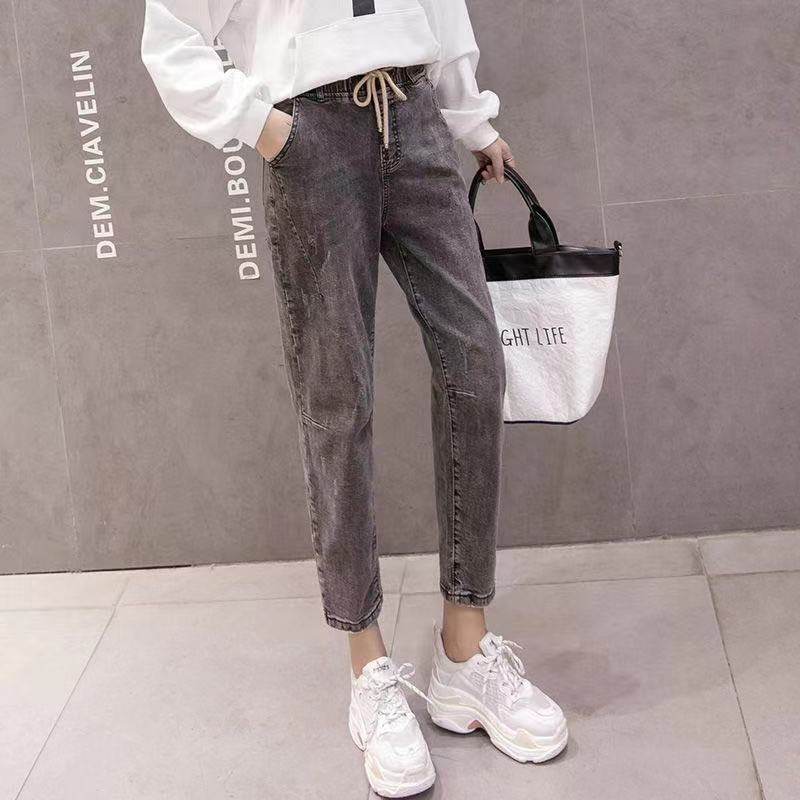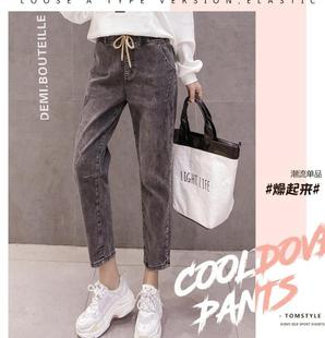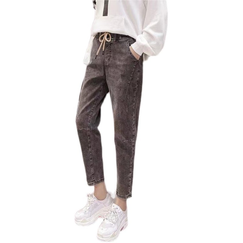 休闲显瘦牛仔裤 6026冬季 气质百搭扎染做旧洗水弯刀阔腿裤 韩版 新款