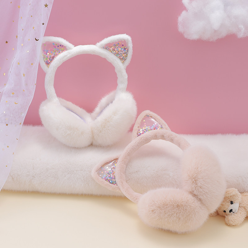 冬季 耳罩可爱保暖猫耳朵护耳毛绒骑车防冻防寒耳套捂子可折叠学生