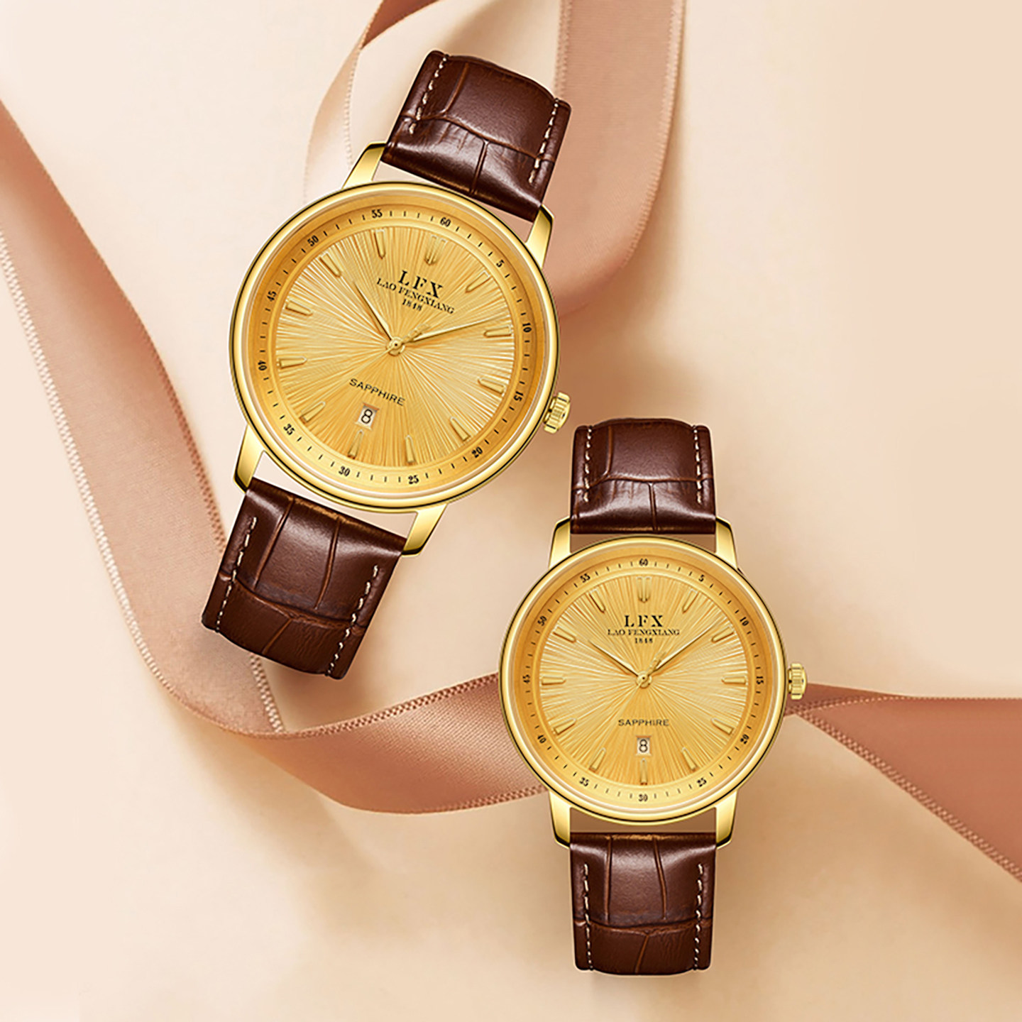 防水石英黄金腕表礼物 老凤祥同心系列足金手表男女情侣款 新款