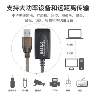 无线网卡数据线15 10米带信号放大器 usb延长线10米 USB2.0延长线