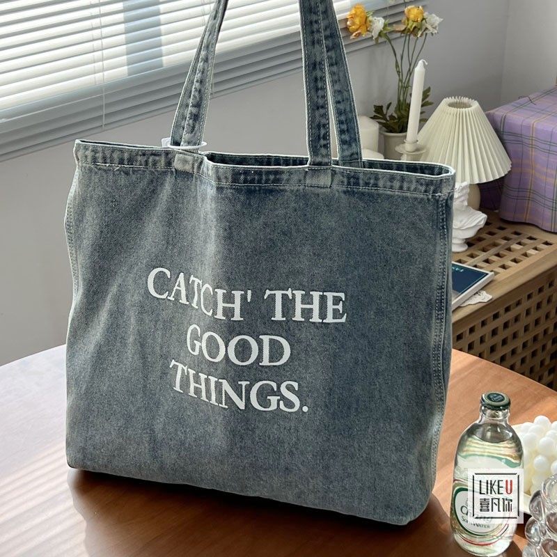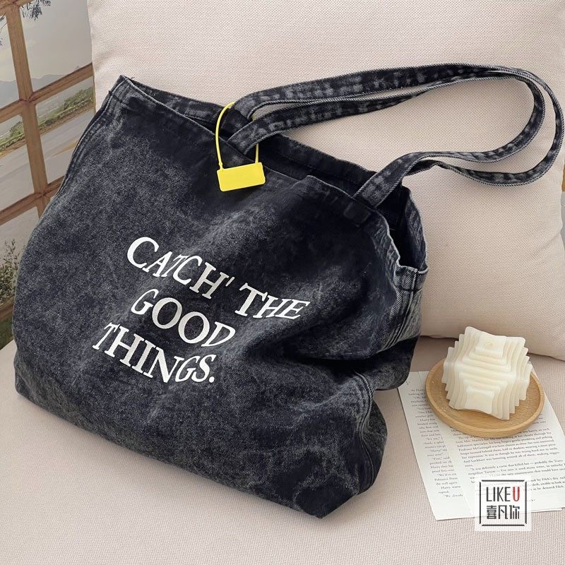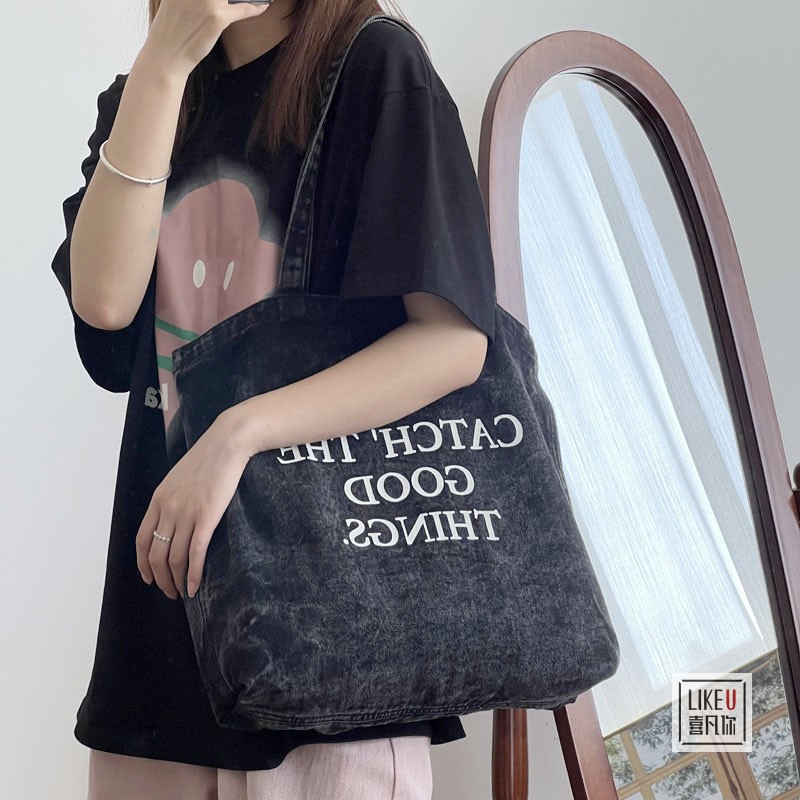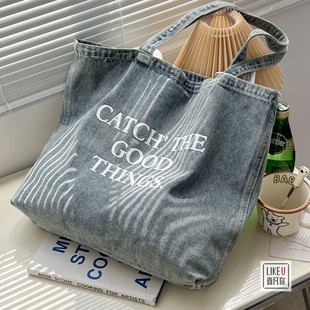原创章若楠同款 文艺水洗牛仔包休闲百搭大容量单肩帆布包 欧美韩版