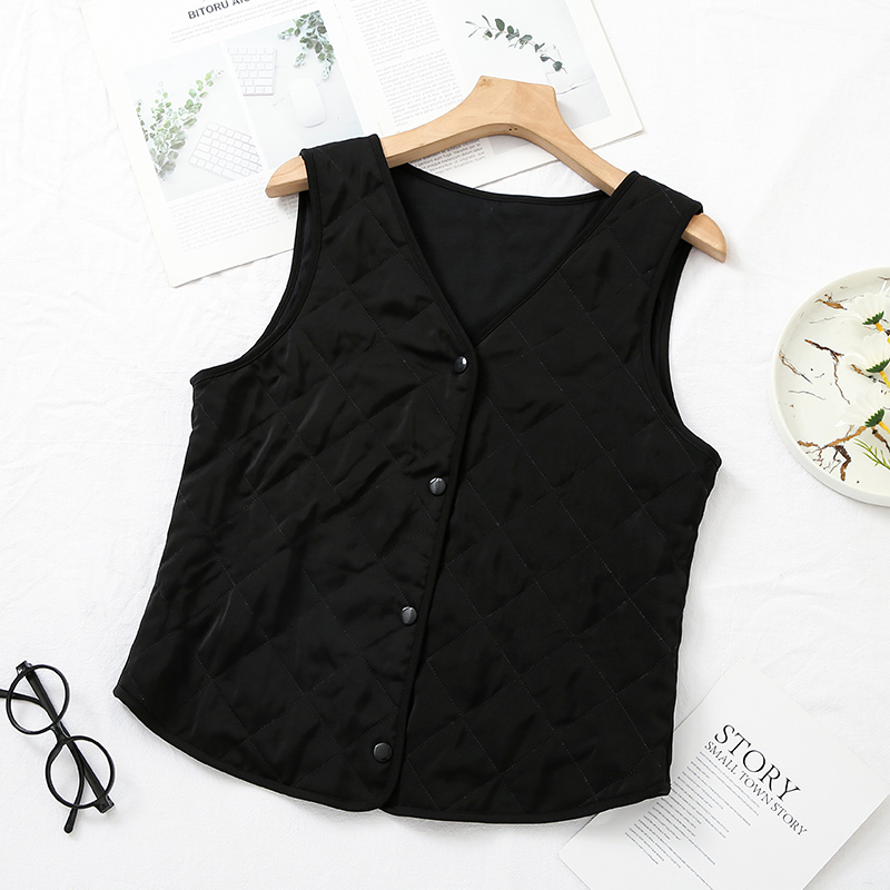 秋冬女桑蚕丝填充马甲内胆真丝纯色保暖修身 棉背心坎肩棉衣