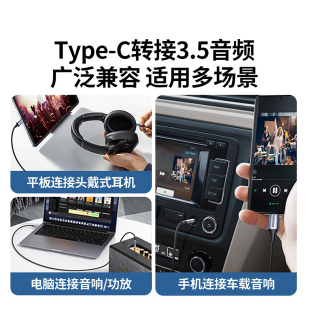 绿联typec转3.5mm音频线aux音响专用连接线耳机typc接口35转接汽车载车用转换器电脑音箱播放器17 16手机安卓