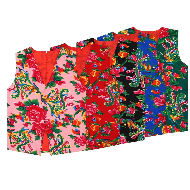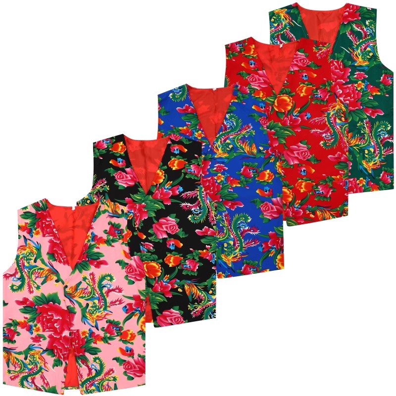 东北大花布马甲男女坎肩民族风舞台姐妹装 二人转年会表演网红嘻哈