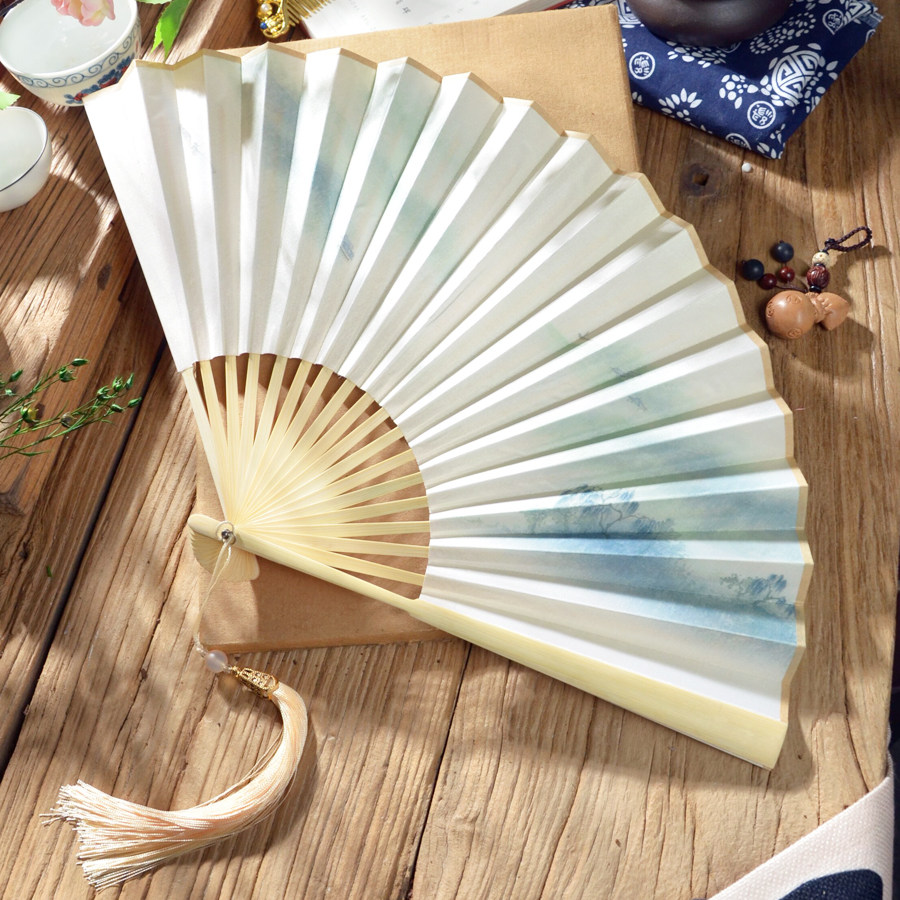 古风扇子折扇夏天耐用绢布男款 男生便携折叠定制广告扇空白扇面男