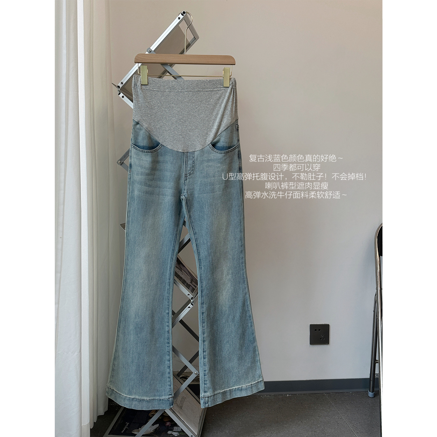 长裤 孕妇拖地牛仔喇叭裤 孕期托腹打底裤 2025新款 不勒肚子外穿秋季