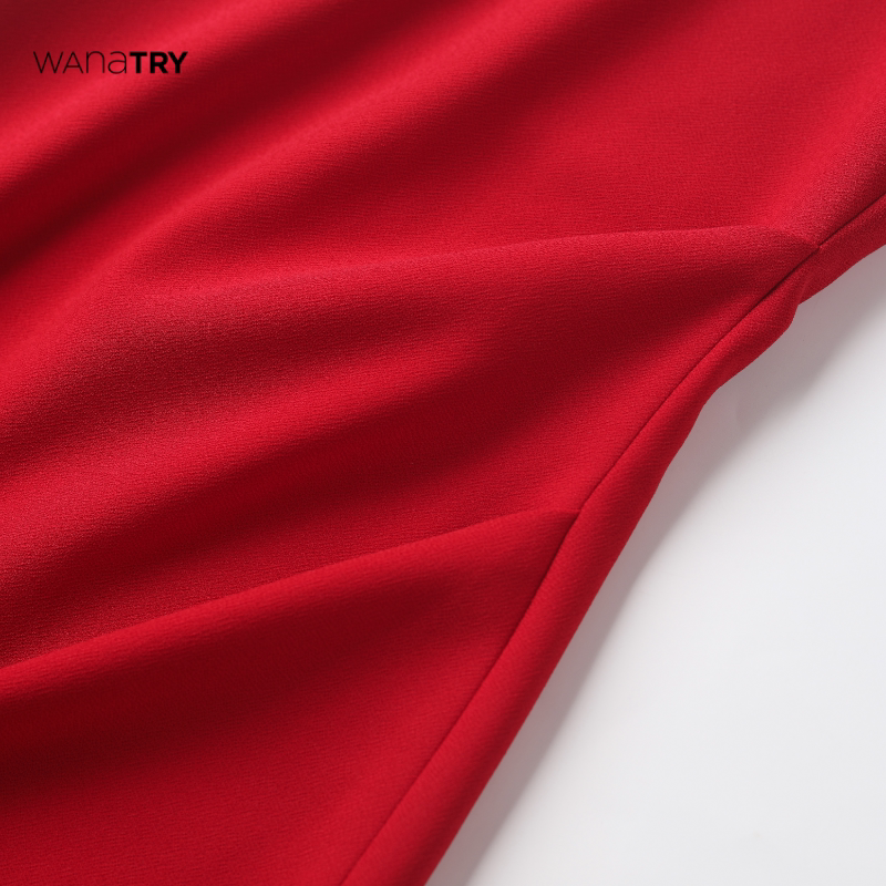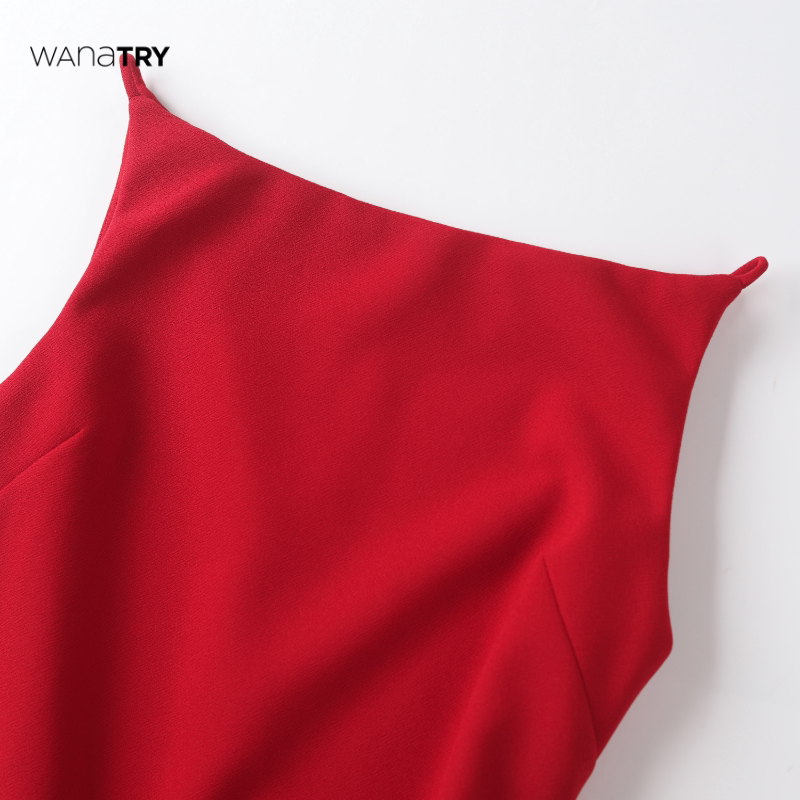 显瘦女款 wana 修身 新款 长裙 try婚礼系高领侧面开衩红色连衣裙夏季