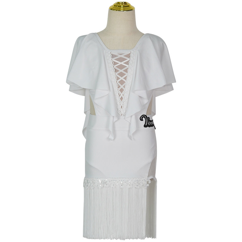 儿童拉丁舞蹈服装 练功服吊带流苏裙披肩女孩集训练习功服 分体套装