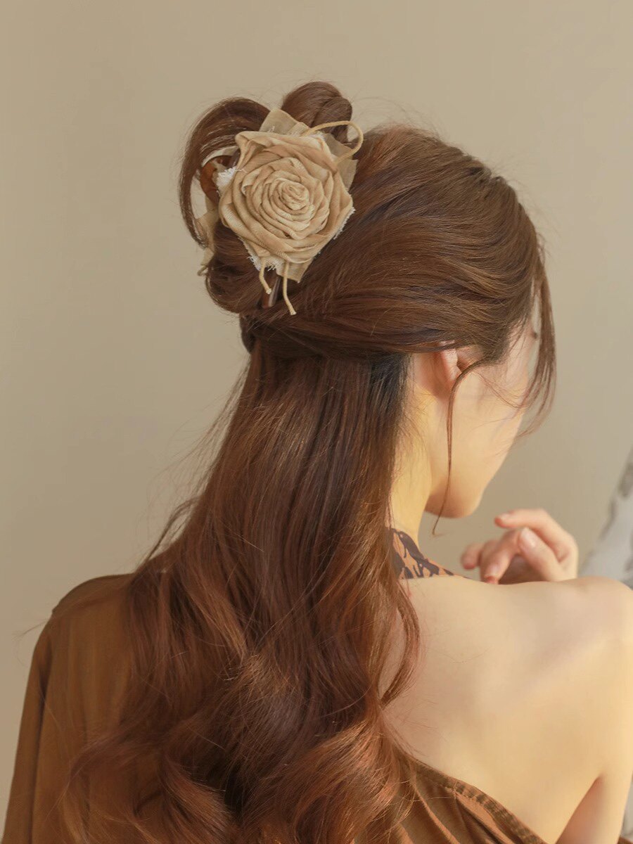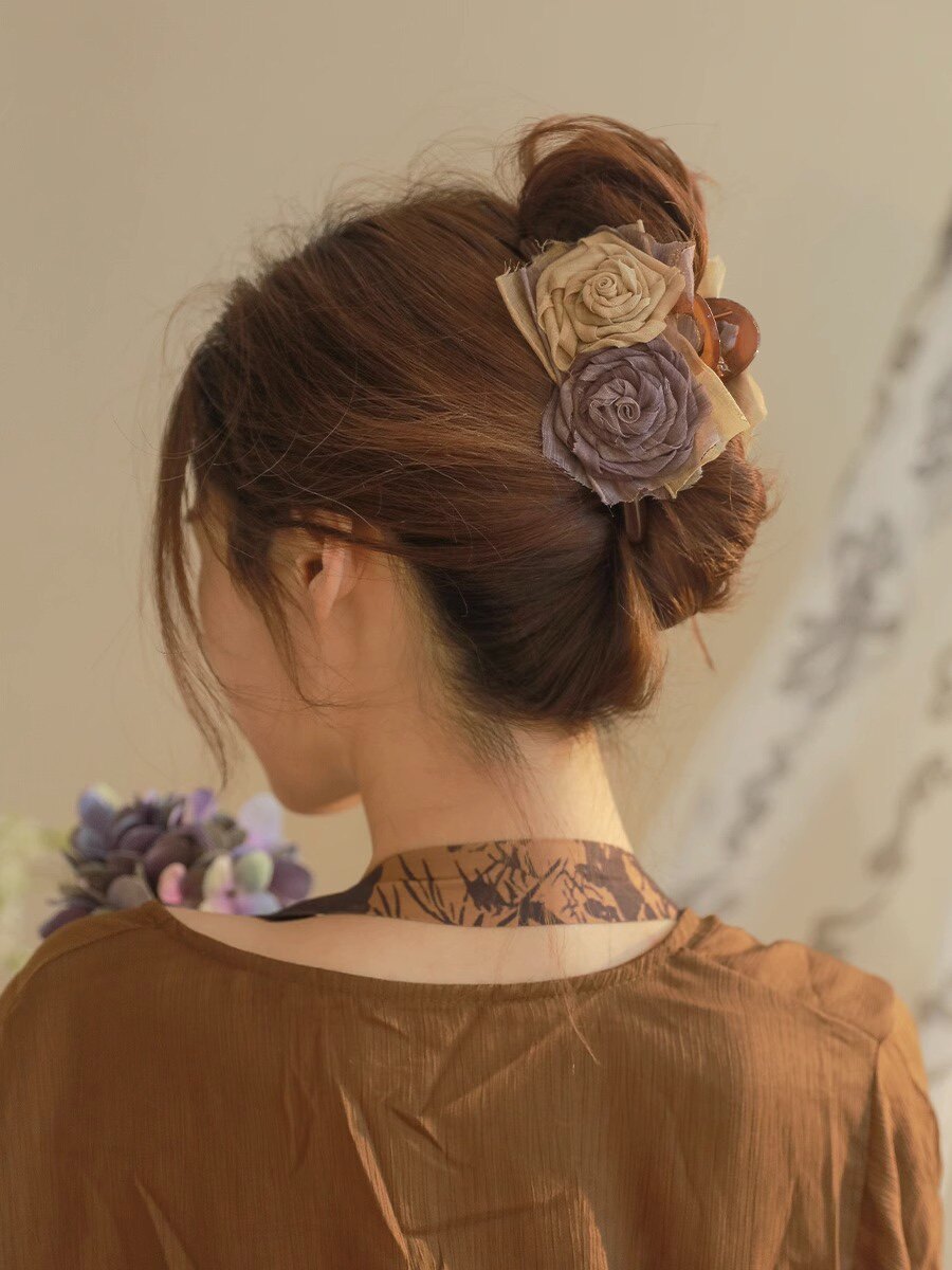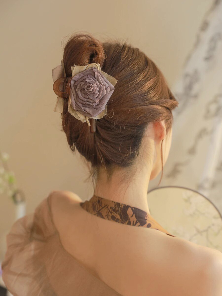 手作布艺干枯玫瑰抓夹大号高级感发夹女后脑勺古风鲨鱼夹气质头饰