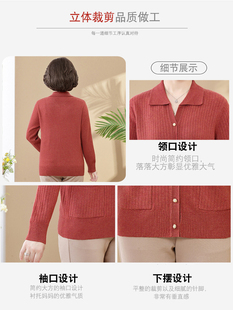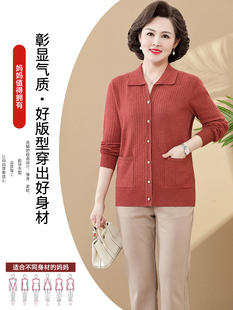 翻领老太太宽松开衫 妈妈春秋装 中老年女装 毛衣上衣外套大码 针织衫