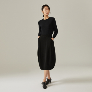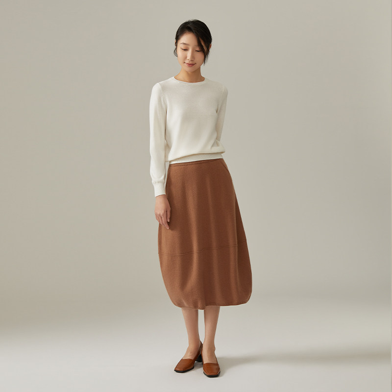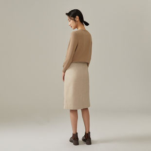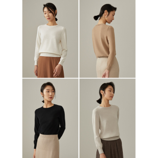 浅秋圆领纯色套头上衣纯羊毛针织Q051A323 经典
