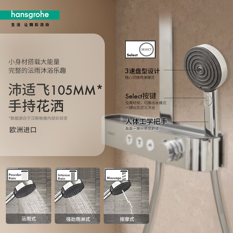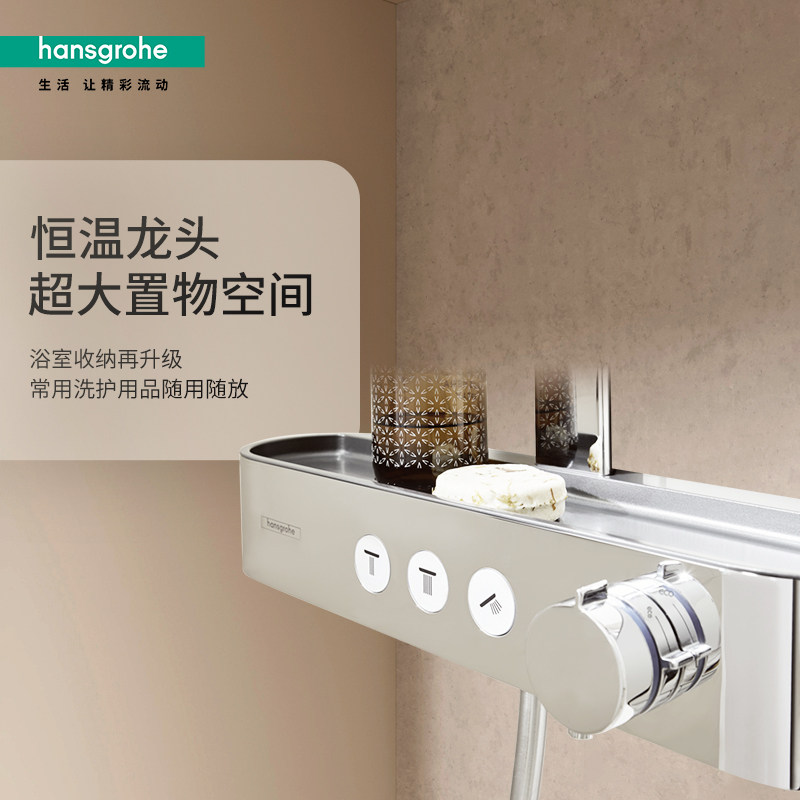 置物台卫浴恒温淋浴花洒套装 汉斯格雅hansgrohe 沛适飞大顶喷明装