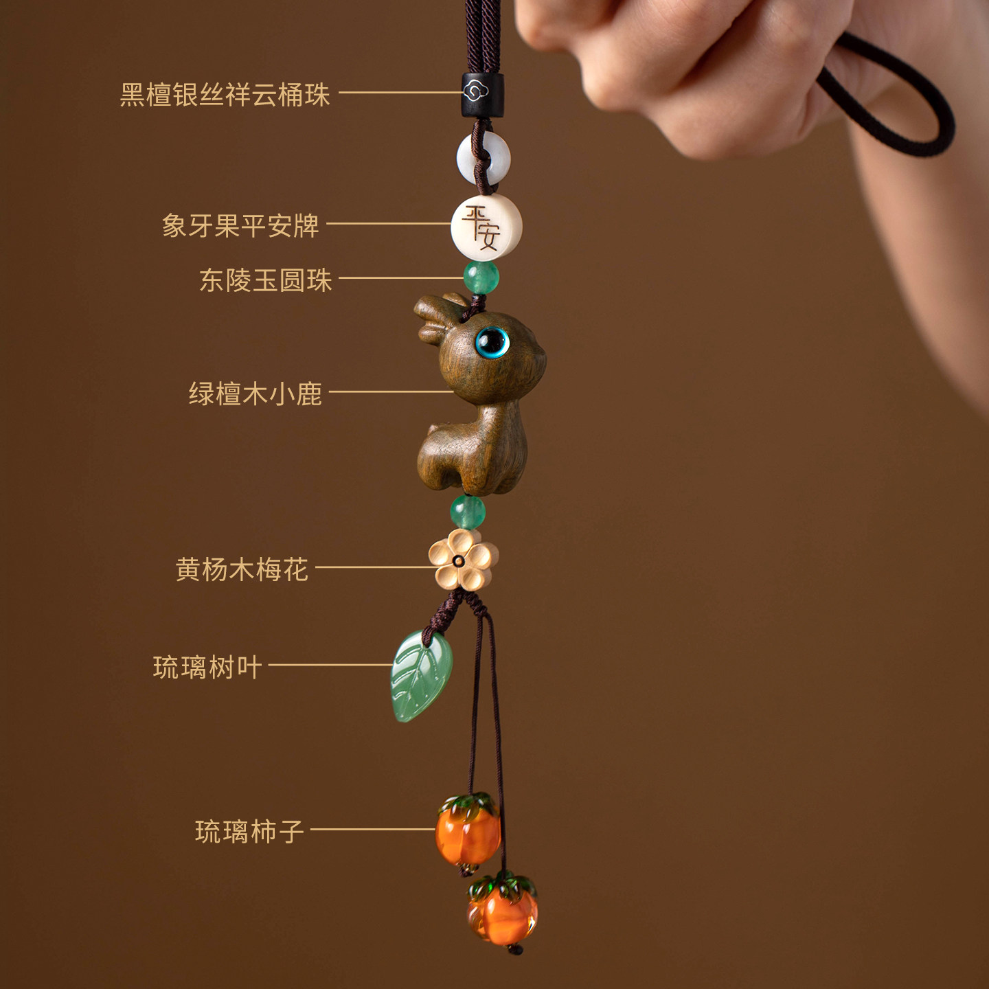 创意平安檀木小鹿车载汽车挂件车内饰品挂饰事事如意后视镜吊坠