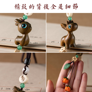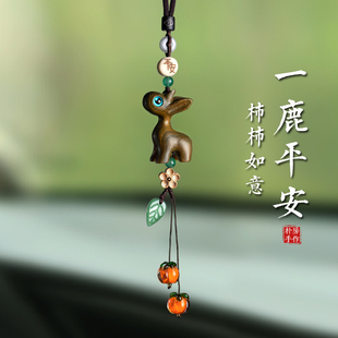 一路平安檀木小鹿高级感车载汽车挂件车内装 饰品挂饰后视镜吊坠绳