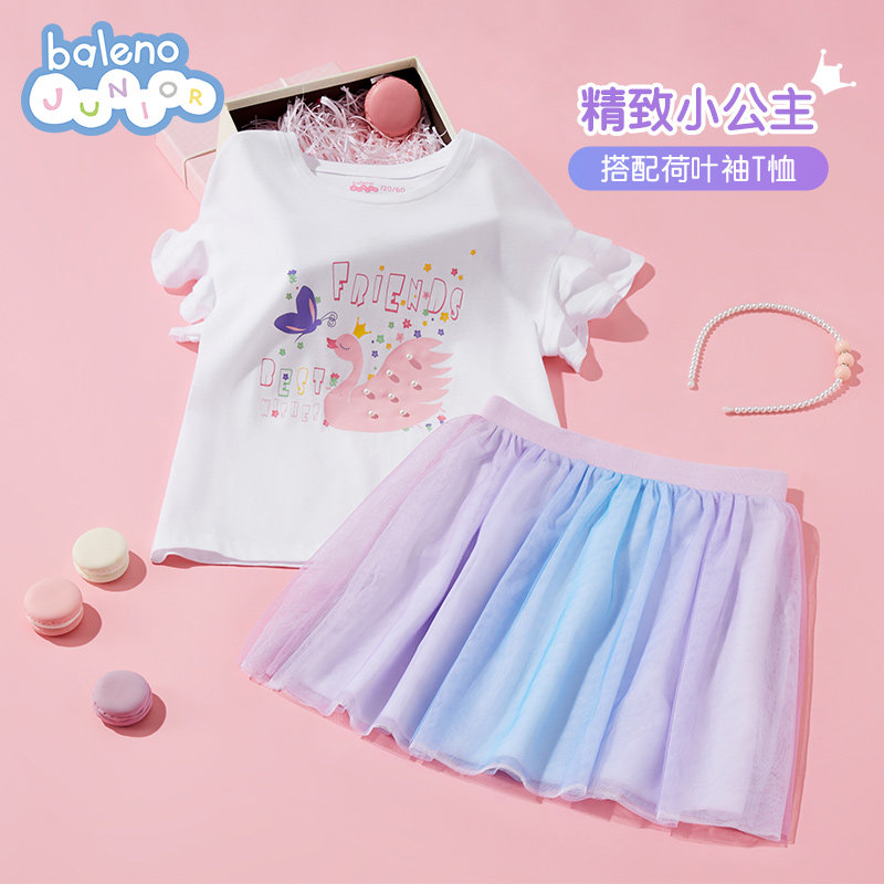 班尼路童装 夏休闲儿童裙子女童蓬蓬半身裙梦幻彩虹渐变短裙中大童