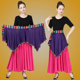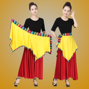 藏族舞蹈围裙广场舞民族风藏式 半身酒红裙子 小围裙女三角巾一片式