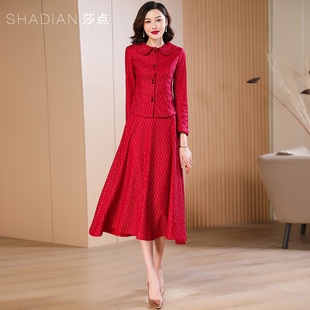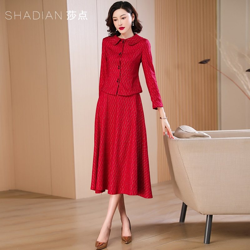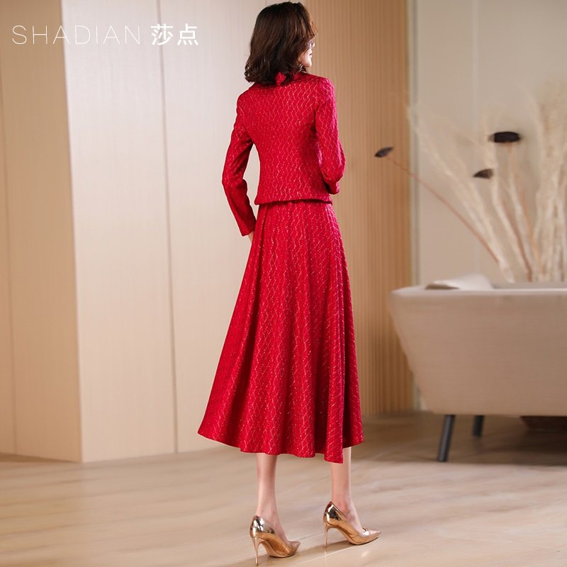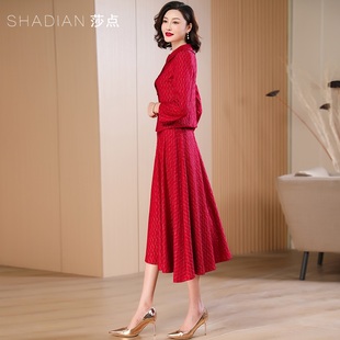 半身裙长裙高级感 两件套裙装 红色今年流行过膝小香风套装 裙时尚
