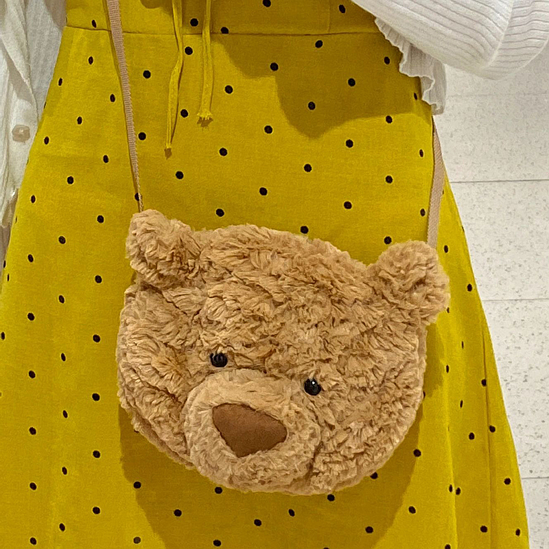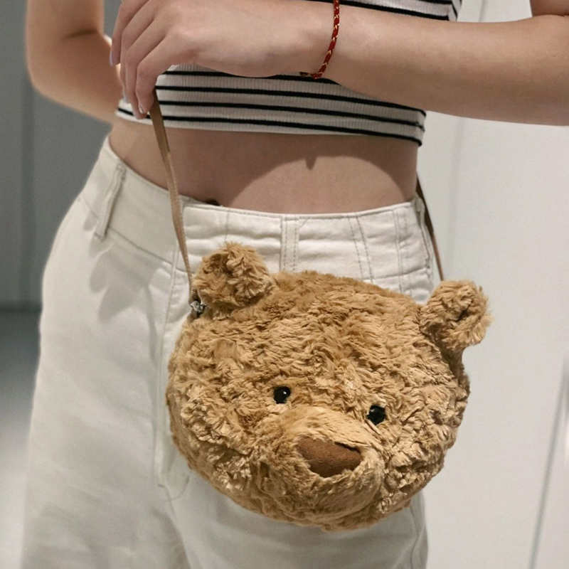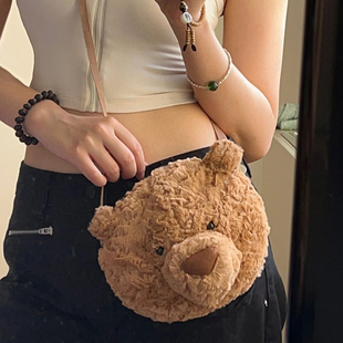 2025新款 巴塞罗熊包包可爱卡通毛绒玩偶熊头包娃娃背包女士斜挎包