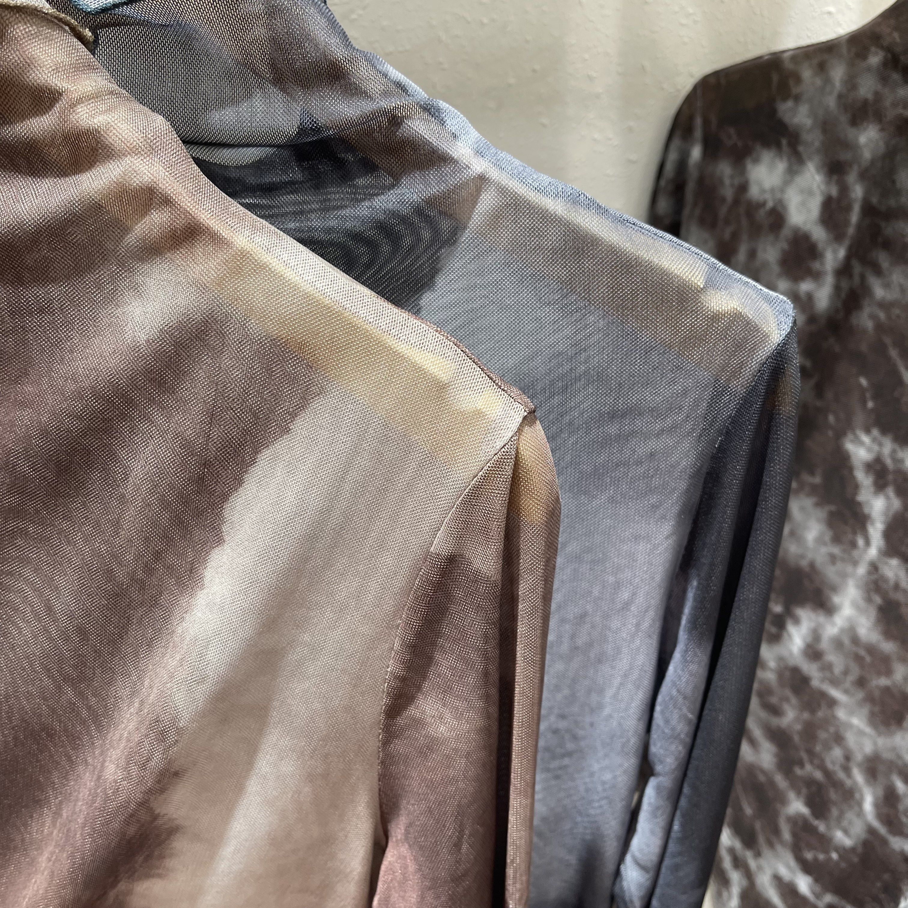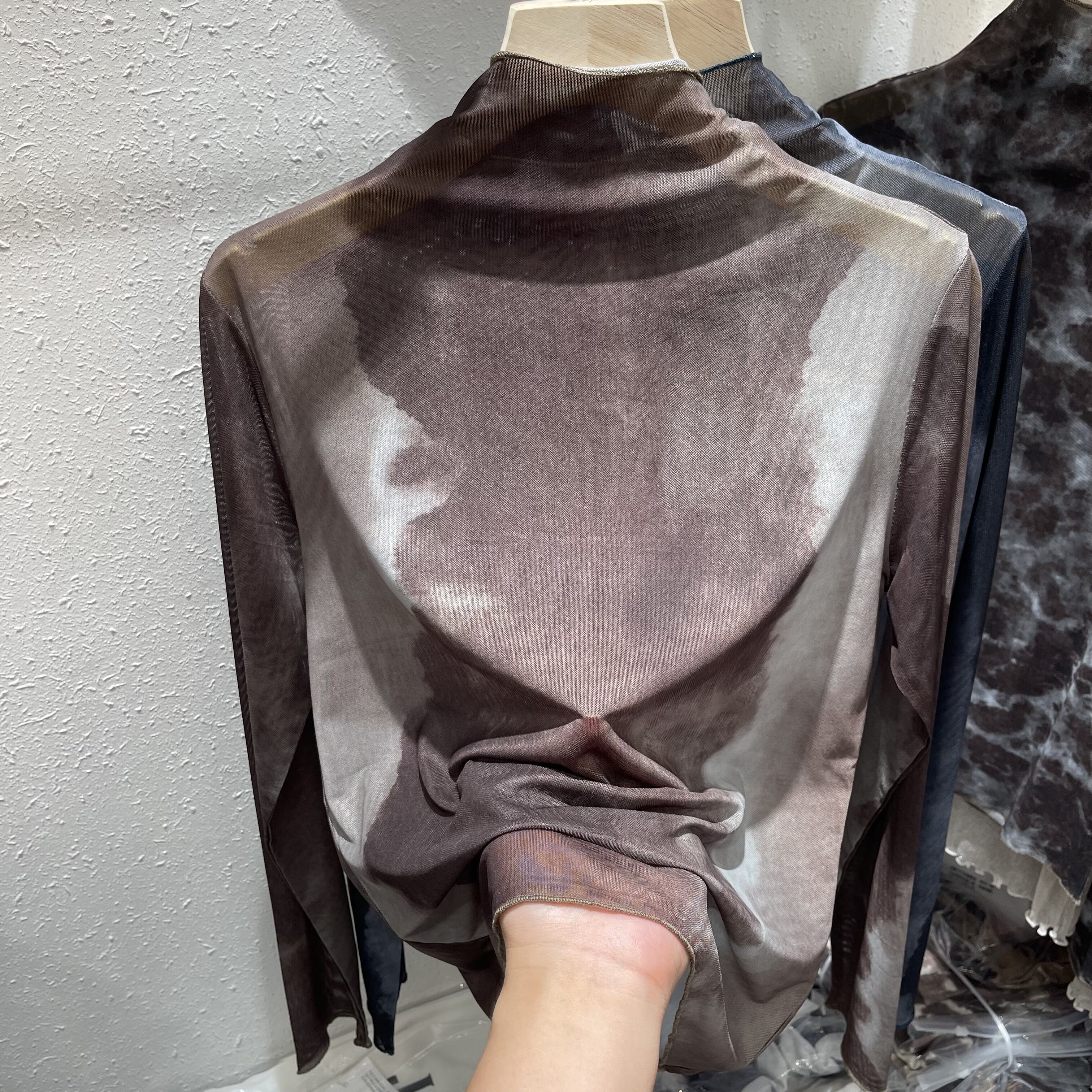 薄款 女2023早秋新款 内搭防晒上衣 打底衫 欧货半高领扎染网纱长袖