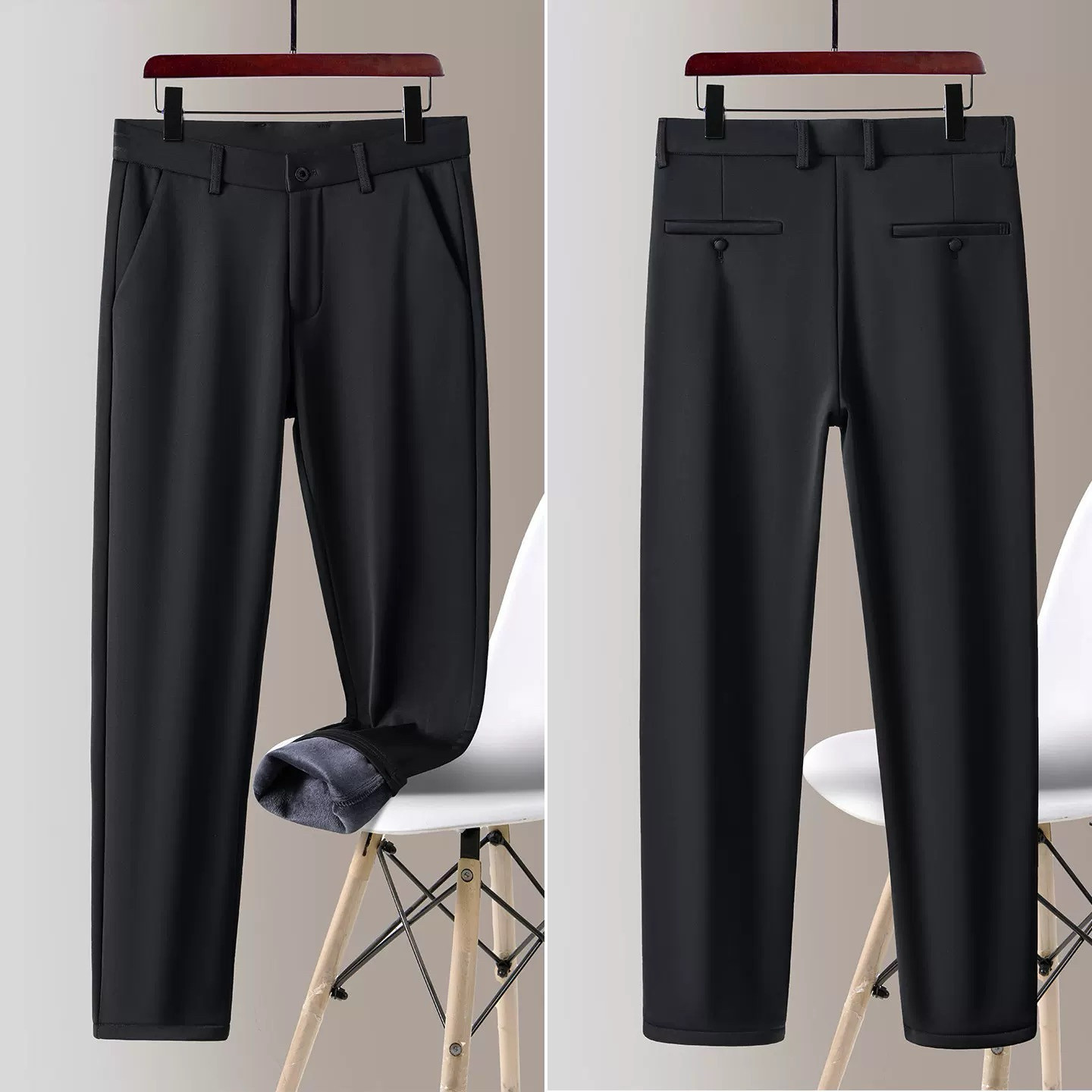 商务正装 休闲裤 男弹力修身 西裤 子男士 黑色加绒加厚款 直筒裤 男冬季