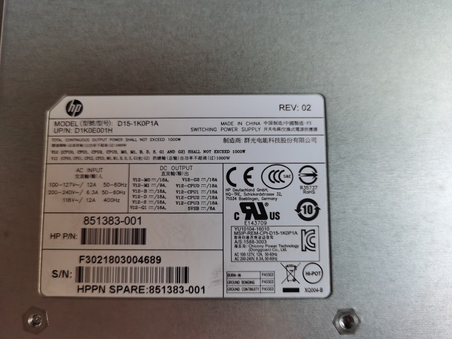 Z4G4 工作站电源 D15 原装 D1K0E001H 1K0P1A 1000W 全新惠普HP