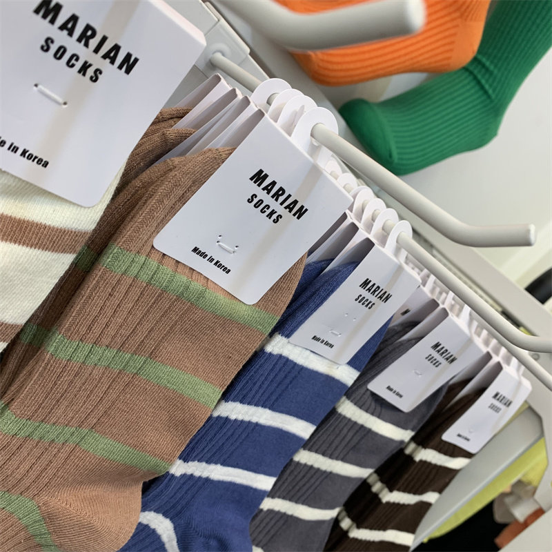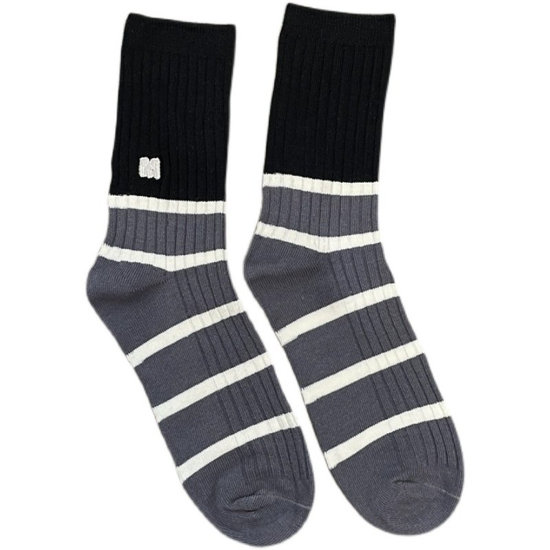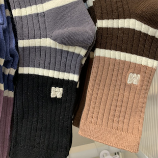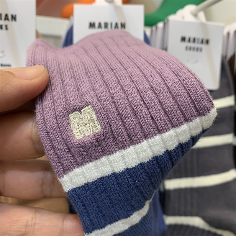 marian韩国女袜东大门秋季 学院拼色条纹刺绣字母m加长中筒袜 新款