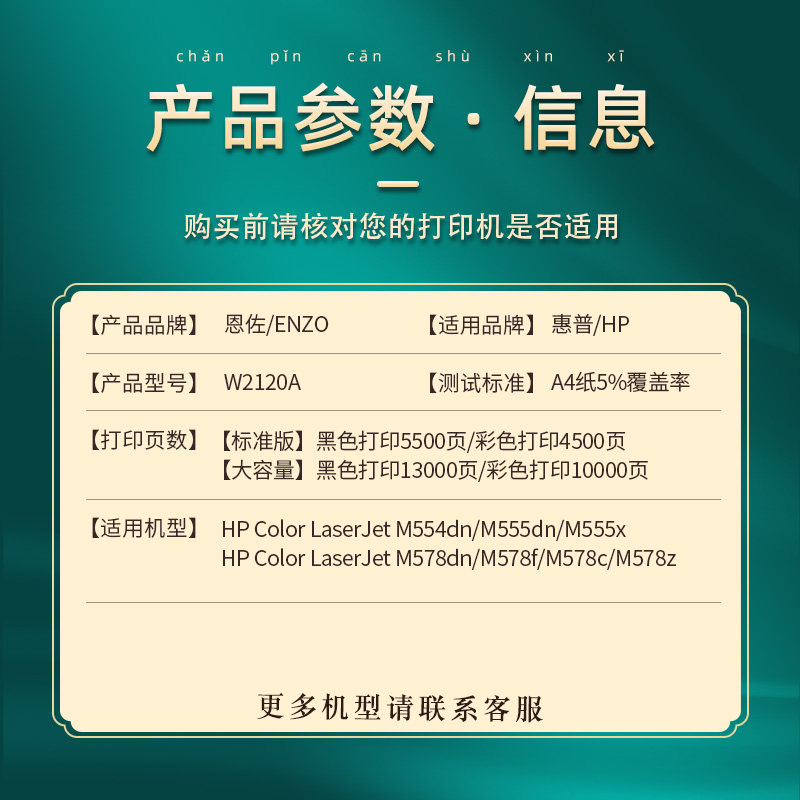 M578z彩色打印机墨盒墨粉HP212A 恩佐适用惠普M554dn硒鼓M555dn M578c M578f W2120A硒鼓 M555x碳粉盒M578dn