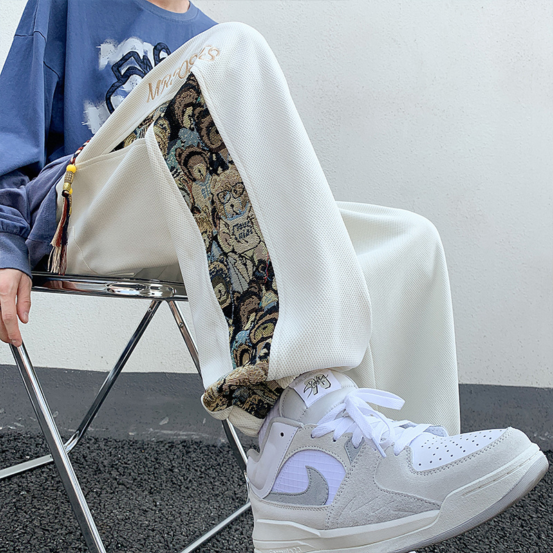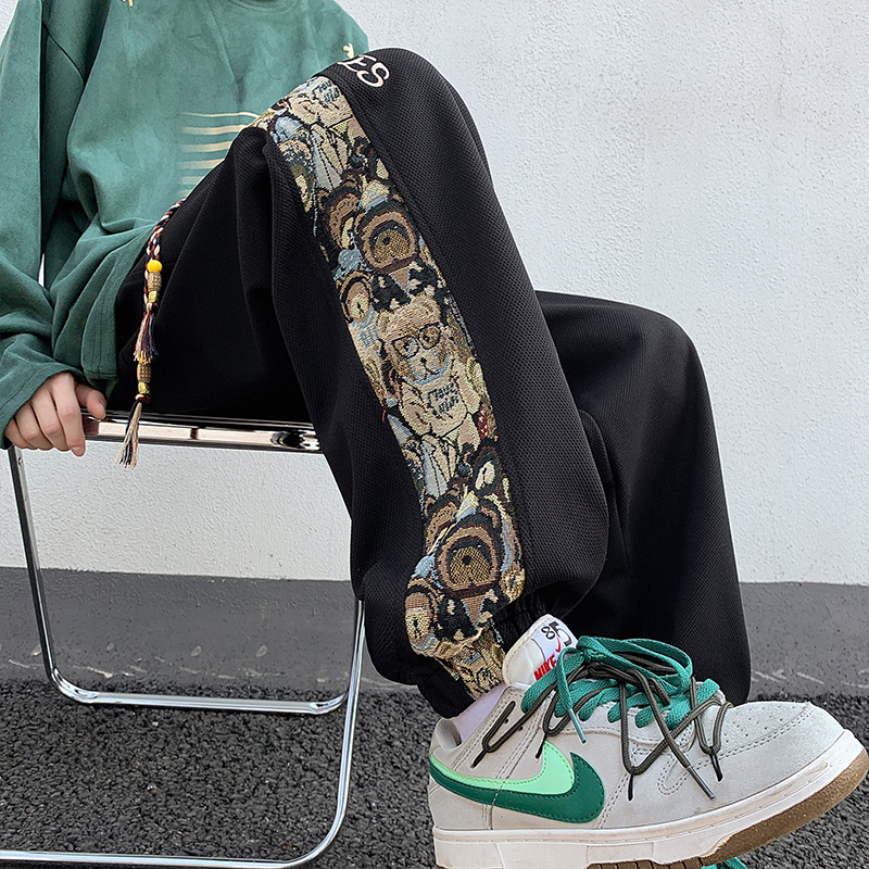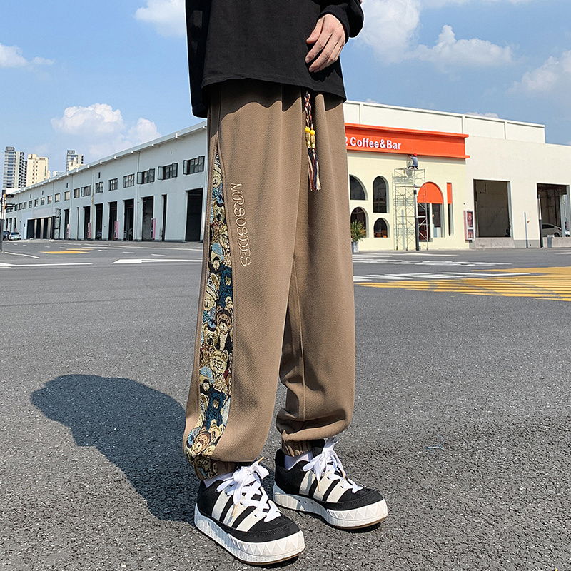 运动宽松束脚工装 刺绣裤 国潮卫裤 加绒加厚阔腿休闲长裤 子男秋冬款