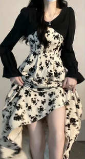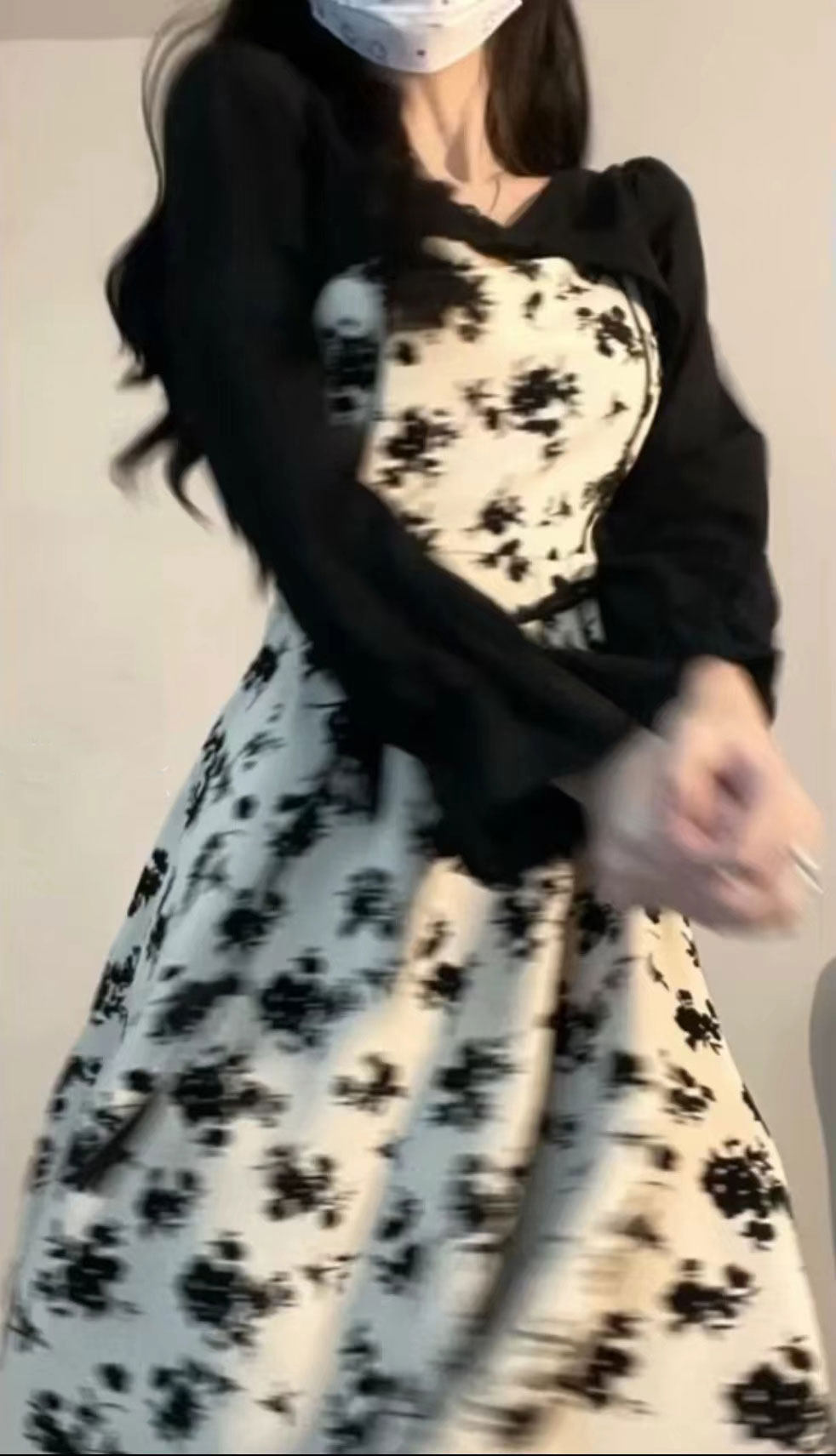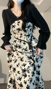 森系初恋裙2025春秋新款 两件套裙子 纯欲碎花连衣裙女设计感长袖